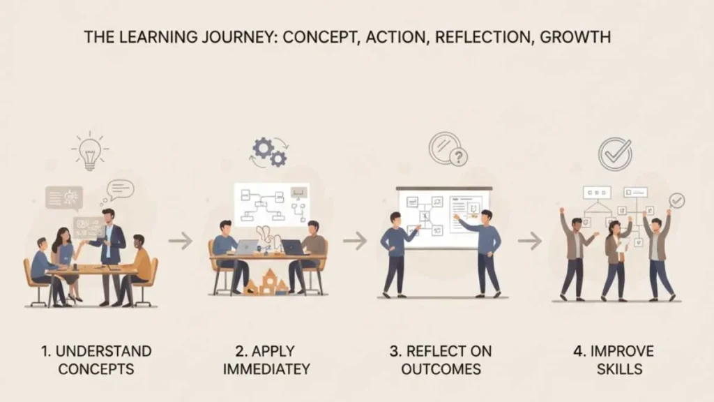 Instead of long lectures followed by delayed practice, learners engage with real tasks early in the process. This helps reduce confusion, increase clarity, and strengthen learning outcomes. It also aligns closely with how people naturally learn skills in everyday life.