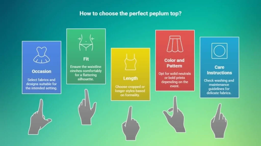 3. Length: Cropped peplums for casual looks, longer ones for formal settings.