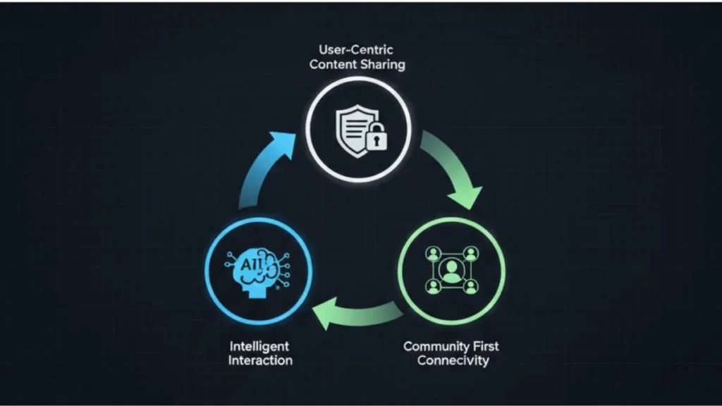 It is best described as a structured digital connectivity model rather than a standalone app. It represents a shift from attention driven systems toward value driven interaction. Instead of prioritizing endless scrolling or viral content spikes, this intelligent content sharing platform emphasizes relevance, context, and long term community growth.