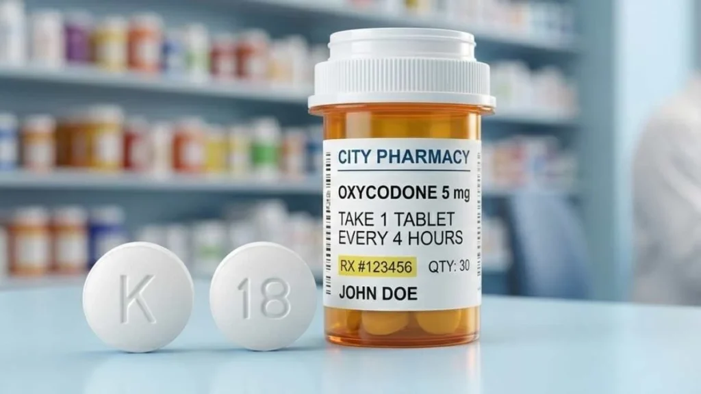 White K18 pill contains oxycodone HCl 5 mg, a Schedule II controlled substance in the United States. Doctors prescribe it for short term pain, injury recovery, post-surgical discomfort, or breakthrough pain in chronic conditions. Because it is a narcotic pain reliever with abuse potential, it must be used exactly as directed by a licensed healthcare provider.