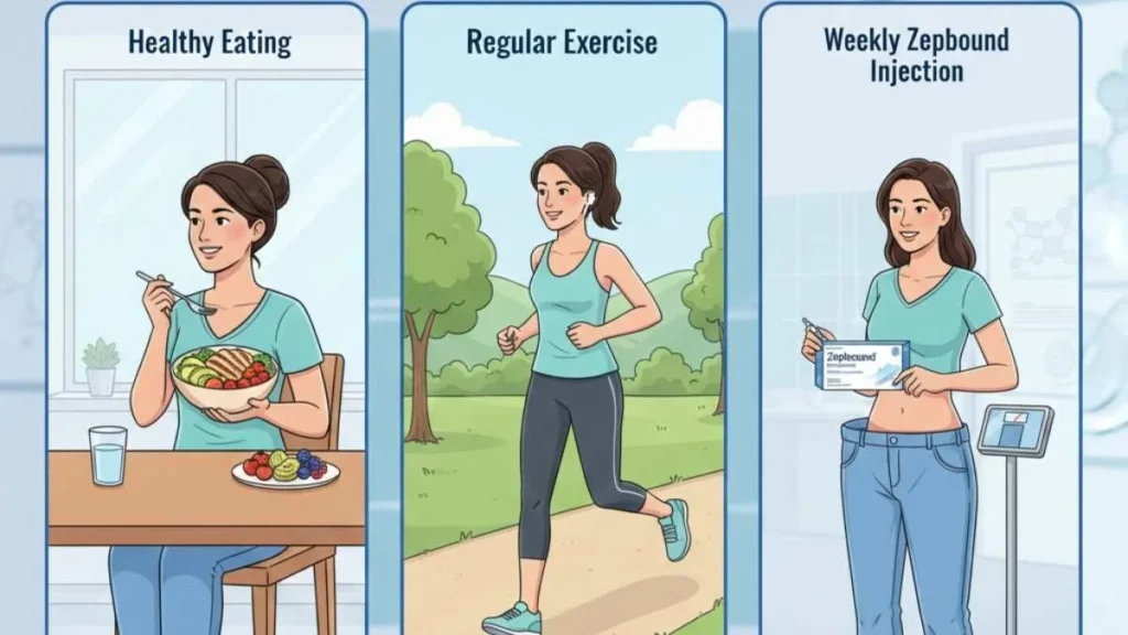 Zepbound works best when combined with diet and physical activity. Sustainable results require commitment to these lifestyle adjustments. Recommended strategies include reduced-calorie, nutrient-rich meals, regular aerobic and strength exercises, and behavioral support such as counseling or structured weight management programs.